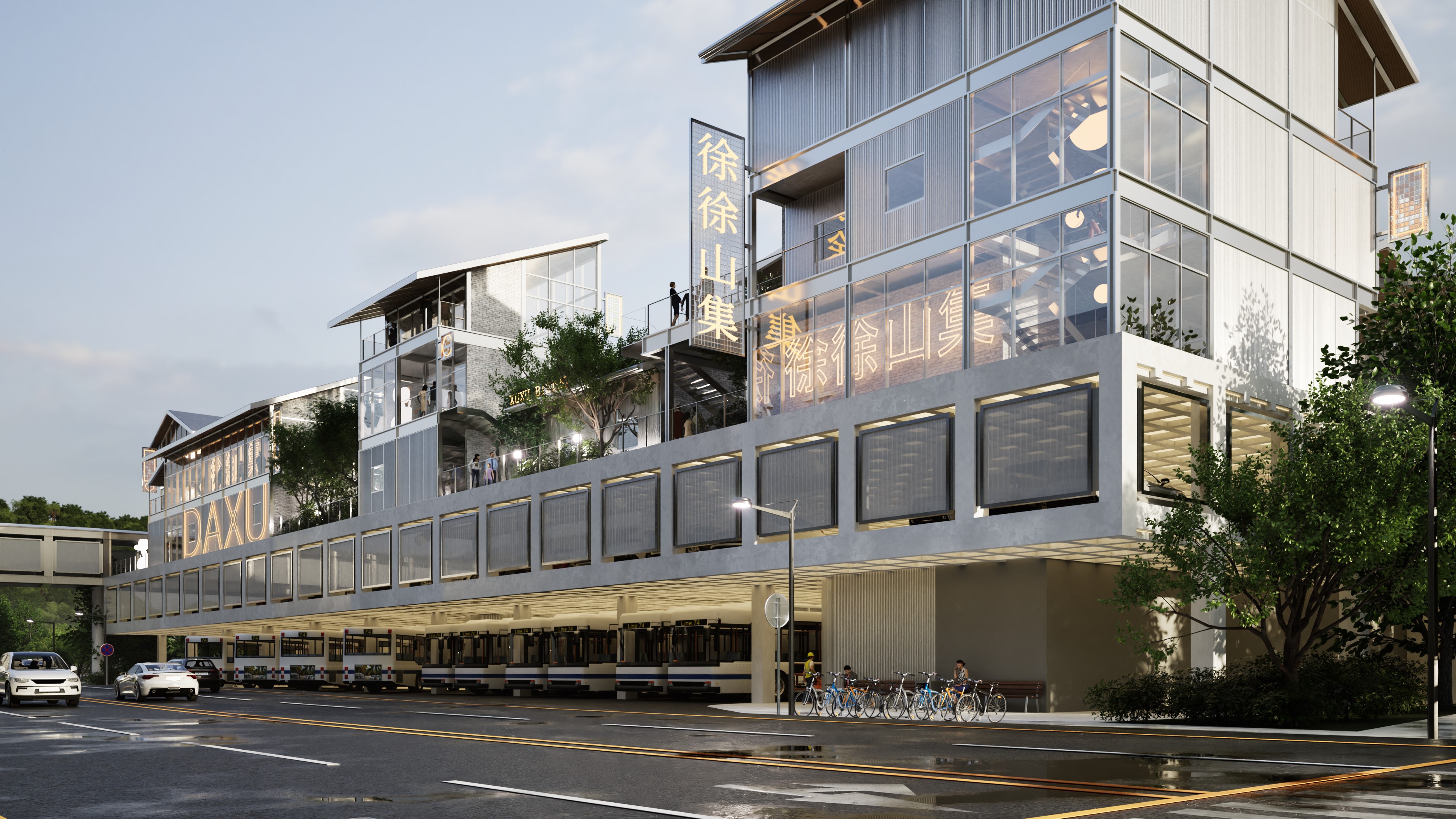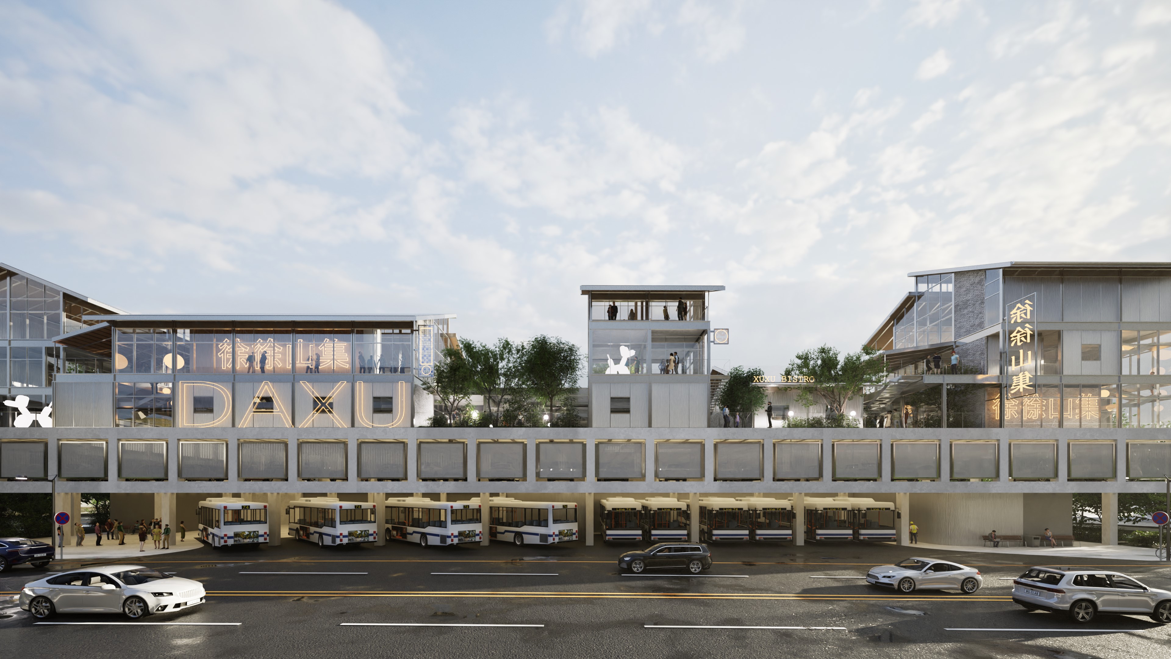 The Daxu Bus Terminal Complex is located in Daxu Town,Xiangshan County, Ningbo, directly across from the Daxu High-Speed RailwayStation. In the context of a new urban area shaped by large-scale landplanning, our goal is to create a pleasant and uniquely experiential small scalecommercial street while meeting the rigorous functional and spatial demands ofa bus terminal.